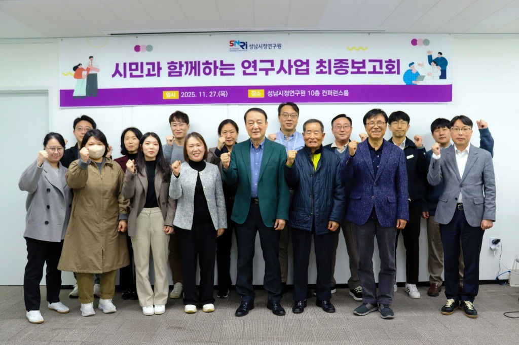 성남시정연구원은 27일, 시민연구자, 연구원 연구진, 시 관계자 등이 참석한 가운데 '시민과 함께하는 연구' 최종보고회를 개최했다. 이 프로그램은 시민들이 자신의 생활과 지역사회의 문제를 직접 연구하고, 그 결과를 시 정책에 반영하기 위한 시민참여형 연구사업이다. ■ 시민의…
