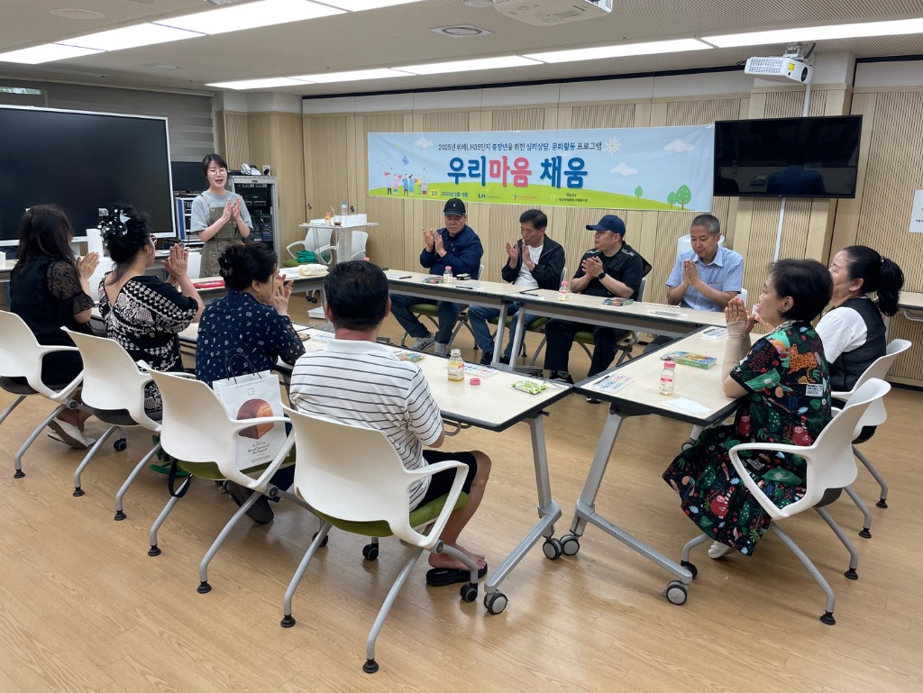 성남위례종합사회복지관(관장 정헌채)은 한국토지주택공사(LH) 후원, 한국사회복지관협회에서 지원하는 2025년 마음건강 사례관리 서비스사업 ‘우리마음 채움’ 사업을 성황리에 마쳤다. ‘우리마음 채움’ 사업은 성남시 수정구 위례동에 거주하는 중장년 12명을 대상으로, 스트레스 완화와…