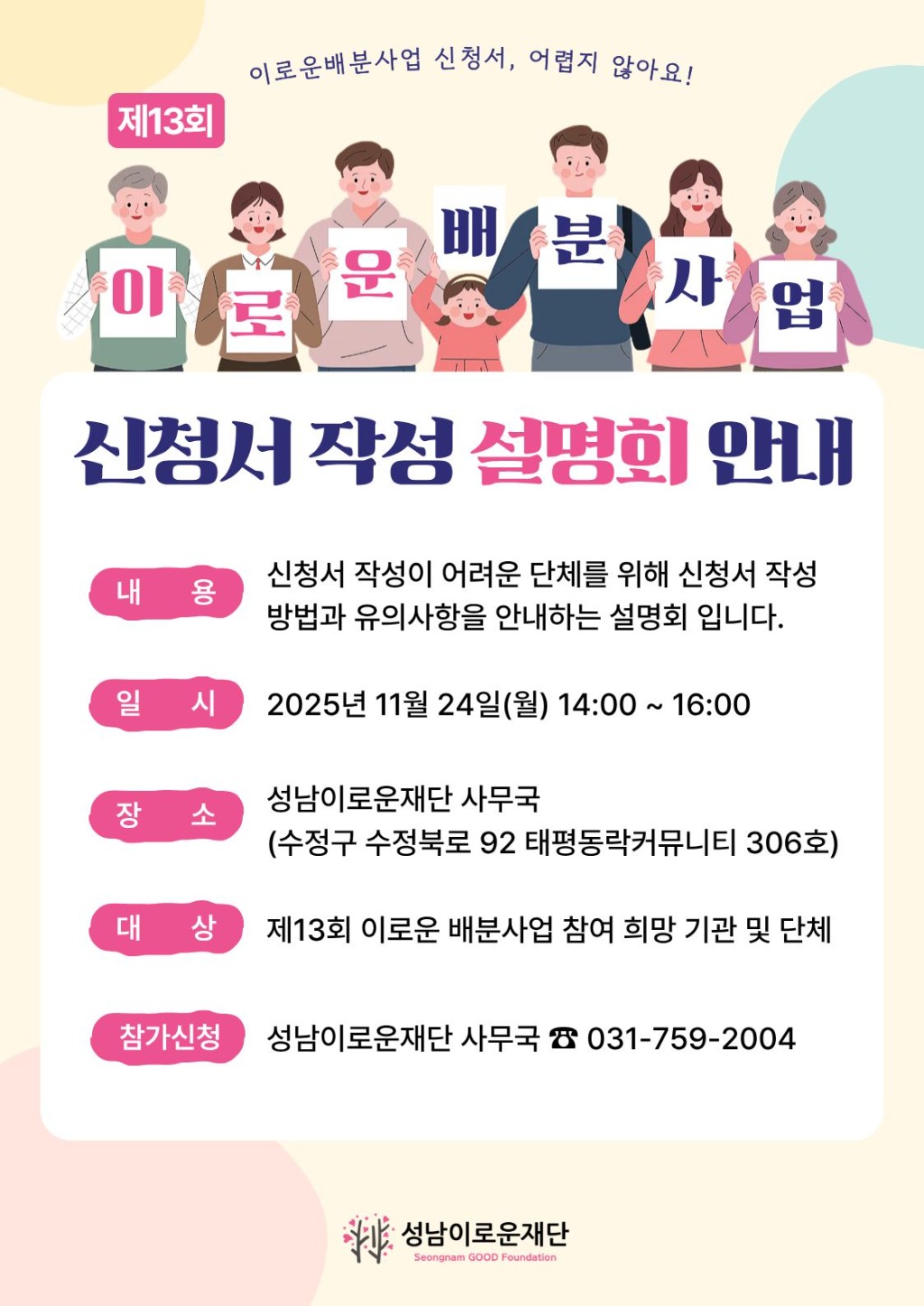 • 성남이로운재단, ‘제13회 이로운배분사업’ 공모 실시