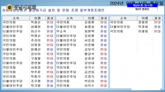 정연화 의원은 “상임위의 의결을 무시하고 재상정한 점에 대해 유감스럽게 생각한다.”라며“공약사업으로 성남사랑상품권 발전적 지속 운영을 하신다며 의회에 업무보고도 하였는데 오히려 상반되는 행보를 보여주고 있다.”며 질타했다.
