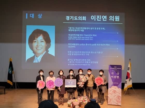 경기도의회 여성가족평생교육위원회 이진연 의원(더불어민주당, 부천7)은 23일(수) ㈔한국여성인력개발센터연합에서 주최하는 ‘제2회 여성경제활동촉진 대상(大賞)’에서 대상에 선정되는 영예를 안았다.
