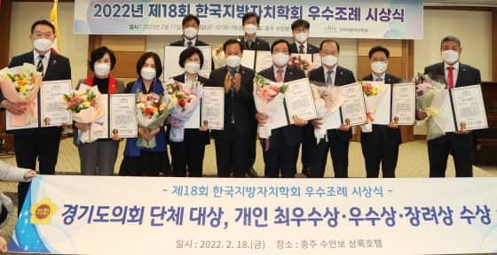 또한, 18일 경기도의회에 따르면 한국지방자치학회가 주관한 제18회 한국지방자치학회 우수조례 시상에서 경기도는 단체부문 대상 1건, 개인부문 최우수상 2건, 우수상 17건, 장려상 1건으로 총 21명의 경기도의원이 역대로 최다수상 하는 영광을 누렸다고 전했다.
