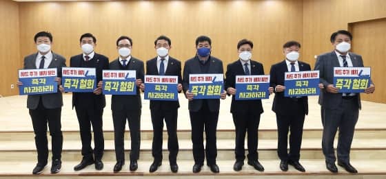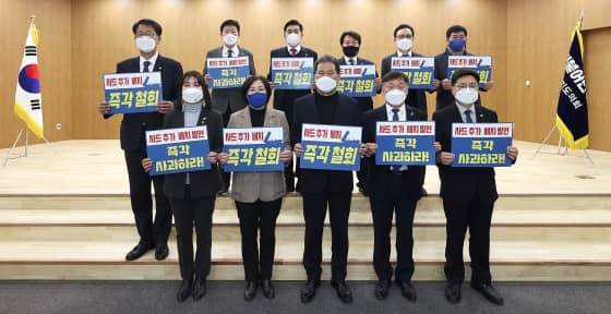 경기도의회 진용복 부의장(민주당, 용인3) 등 용인 출신 지석환(민주당, 용인1), 엄교섭(민주당, 용인2), 남종섭(민주당, 용인4), 김용찬(민주당, 용인5), 유영호(민주당, 용인6), 김중식(민주당, 용인7), 고찬석(민주당, 용인8) 의원은 11일 경기도의회 대회의실에서 ‘국민의힘의 사드 추가배치 공약 철회’를 촉구하는 규탄대회를 펼쳤다.