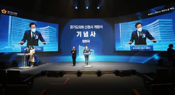 이와 함께 주요 참석자들이 LED 스크린에 손을 대자 ‘경기도의회 광교 신청사 시대 개막’이라는 메시지가 송출되는 형태의 축하의식이 연이어 실시됐다.