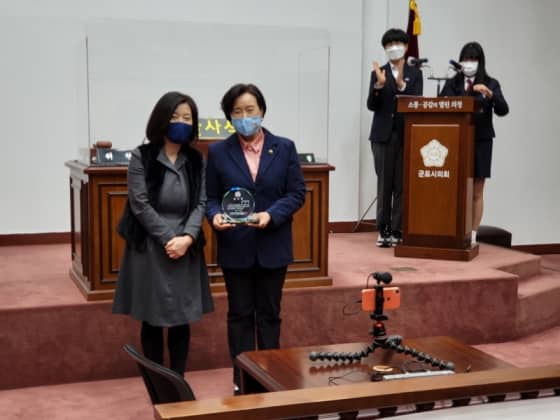 경기도의회 교육기획위원회 위원장 정윤경 의원(더불어민주당, 군포1)은 지난 1월 28일 군포시의회에서 진행된 2021 경기꿈의학교 “미래 법조인 꿈의학교” 수료식에서 꿈의 학교에 기여한 공로를 인정받아 감사패를 받았다고 밝혔다.