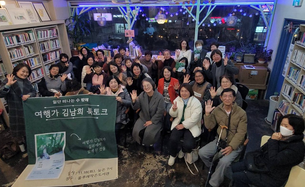 김남희 여행작가 북토크 “일단 떠나는 수밖에”가 지난 18일(목) 늦은 7시에 물푸레작은도서관에서 시민 50여명이 참석한 가운데 신옥희 전 성남여성회 회장 진행으로 성황리에 열렸다. 김남희 작가는 최근 여행중에 낙마 사고 후 골절로 힘든 상황임에도 독자들을 만나 2시간동안 세계 곳…
